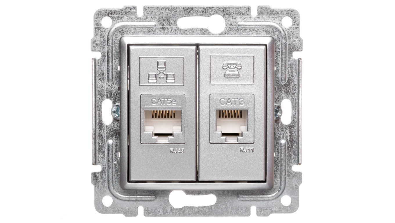 VENA Gniazdo teleinformatyczne RJ45 kat.5e nieekranowane + RJ11 aluminium 514069