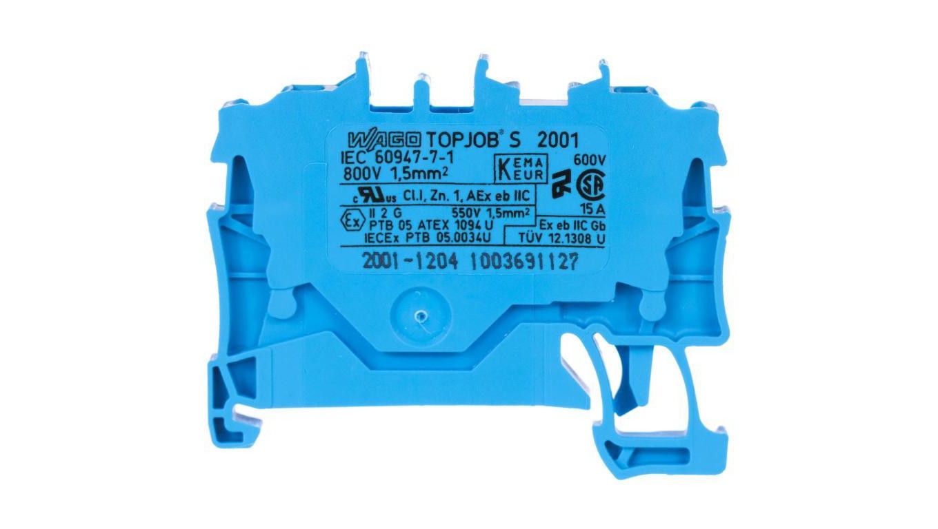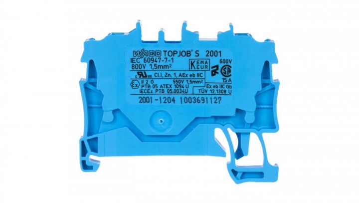 WAGO TOPJOBS 2001-1204 Złączka szynowa 2-przewodowa 1,5mm2 na szynę TH35 niebieska