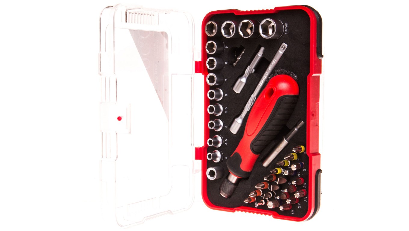 Wkrętak z przedłużkami, grotami i nasadkami PCV BOX /39 części/ MN-14-205