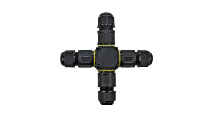 Wodoodporna mufa kablowa czterowlotowa z 3 torowym złączem bezśrubowym, IP68, 450V
