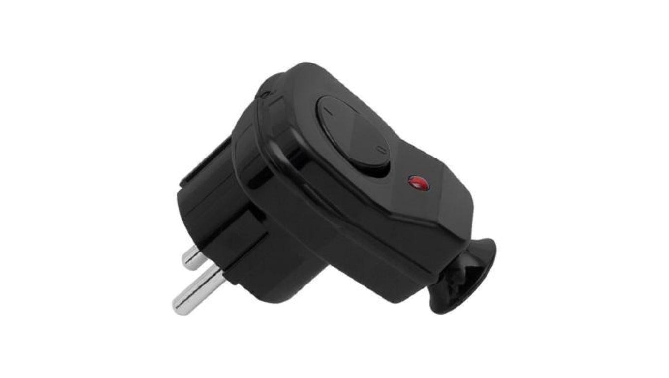 Wtyczka przenośna kątowa z wyłącznikiem, podświetlenie, czarna / 24520