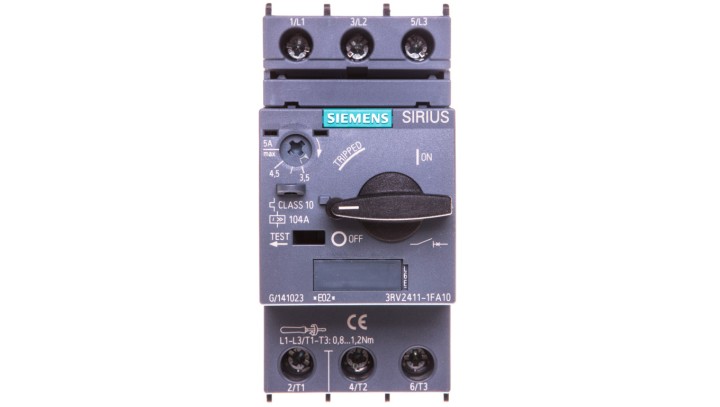 Wyłącznik do transformatorów 3P 3,5-5A 100kA S00 3RV2411-1FA10