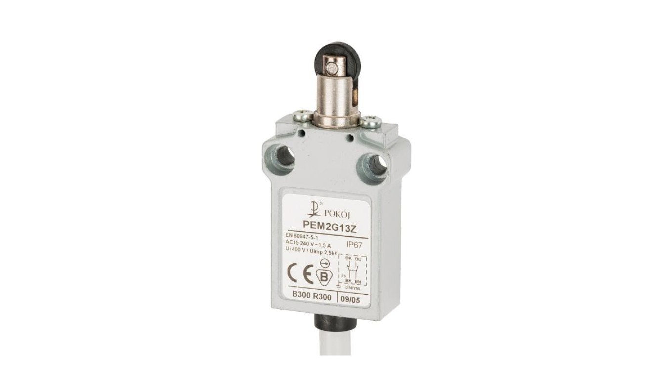 Wyłącznik krańcowy 1R 1Z wolnoprzełączający popychacz metalowy z rolką z tworzywa równoległą Ø12 PEM2G13X A37-B84X