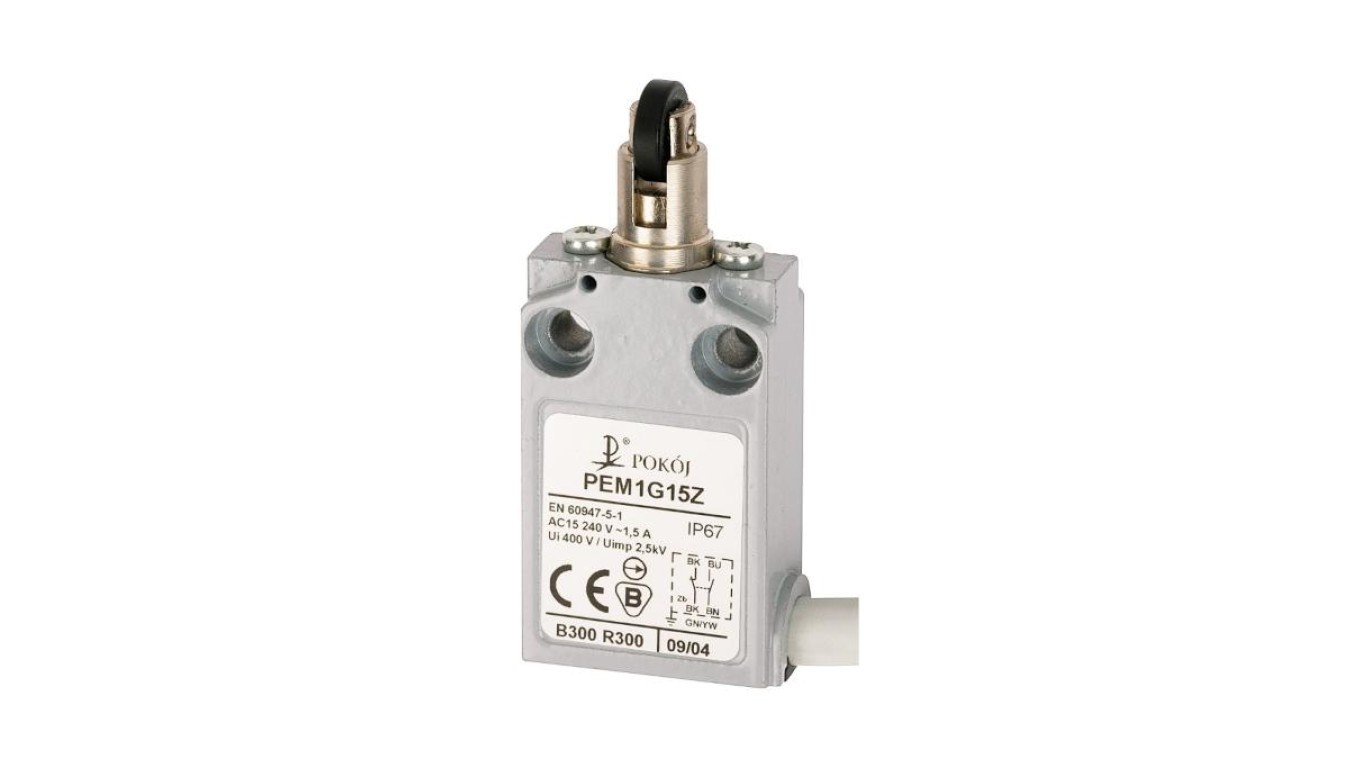 Wyłącznik krańcowy 1R 1Z wolnoprzełączający popychacz metalowy z rolką z tworzywa prostopadłą Ø12 PEM1G15X A37-A86X