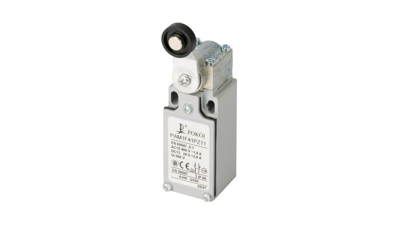 Wyłącznik krańcowy 1R 2Z wolnoprzełączający dźwignia z rolką z tworzywa sztucznego Ø18 PAM1F41PX21 A37-4676
