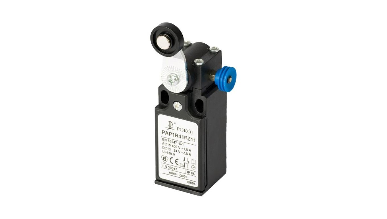 Wyłącznik krańcowy 2R wolnoprzełączający dźwignia z rolką z tworzywa Ø18 z resetem PAP1R41PW02 A37-1R64