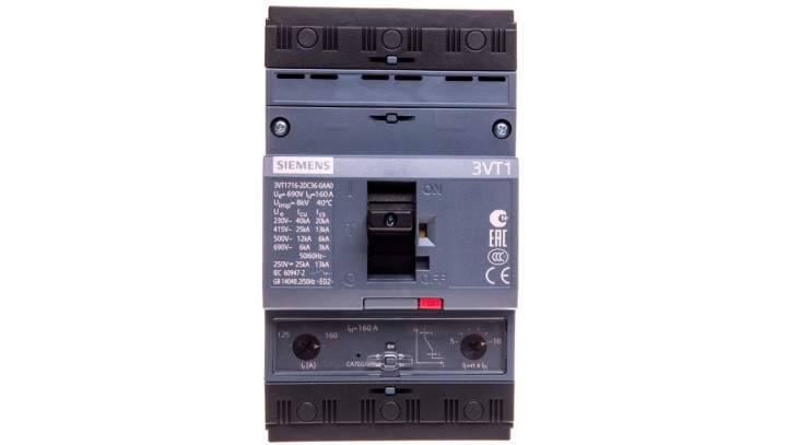 Wyłącznik mocy 160A 3P 25kA 3VT1716-2DC36-0AA0