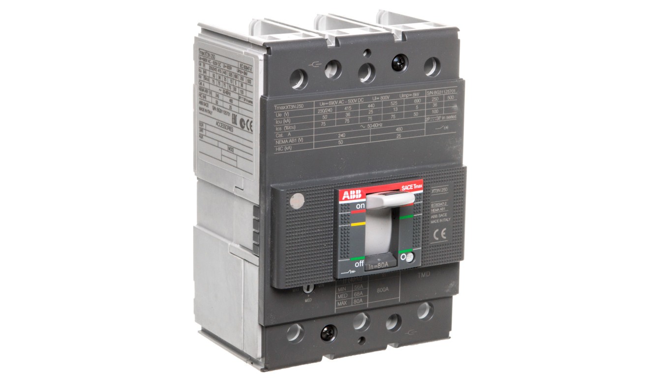 Wyłącznik mocy 3P 80A 36kA XT3N 250 TMD 80-800 3p F F 1SDA068054R1