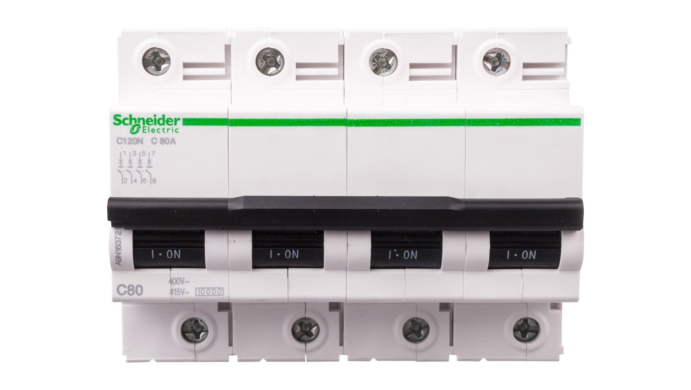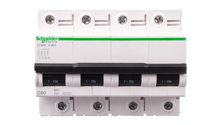 Wyłącznik nadprądowy 4P C 80A 6kA AC iC120N A9N18372