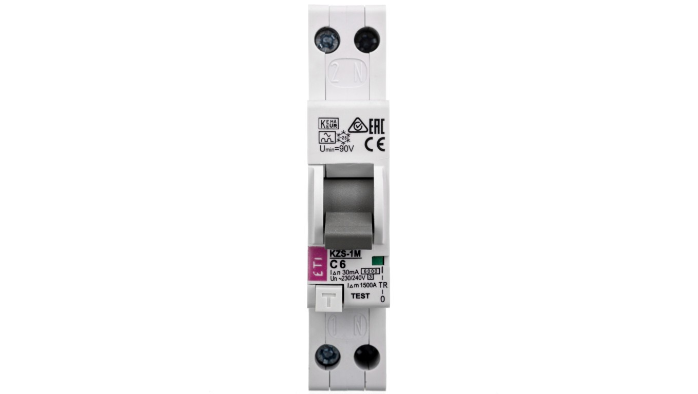 Wyłącznik różnicowo-nadprądowy 1P 6A C 0,03A typ A (zas. od dołu) KZS-1M 002175221