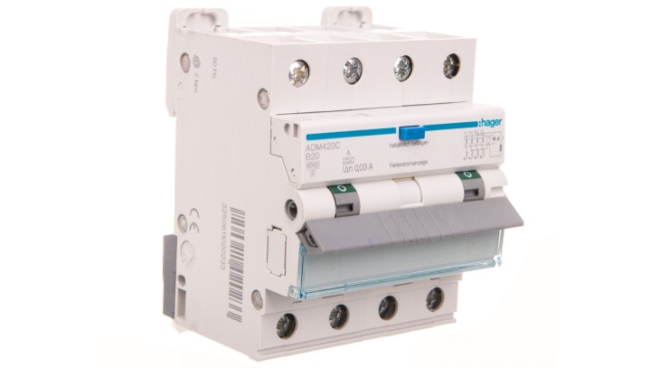 Wyłącznik różnicowonadprądowy 4P B 20A 0,03A Typ A 6kA RCBO ADM420C
