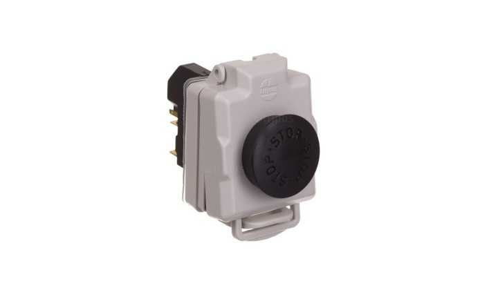 Wyłącznik zanikowonapięciowy do wbudowania 32P0218.04, przyciskowy, 4 styki, 16A, z nakładką STOP bez blokady, dodatkowy styk ce