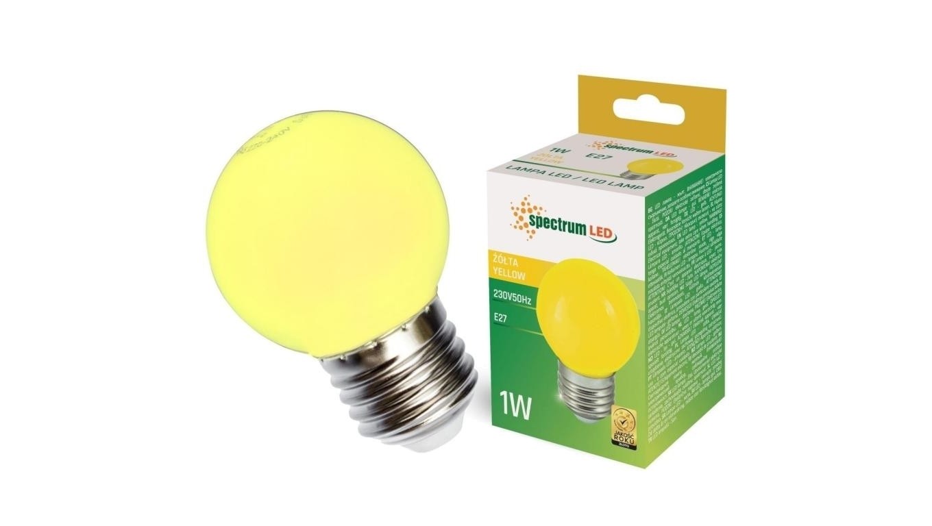 Żarówka LED E27 230V 1W kula żółta PVC