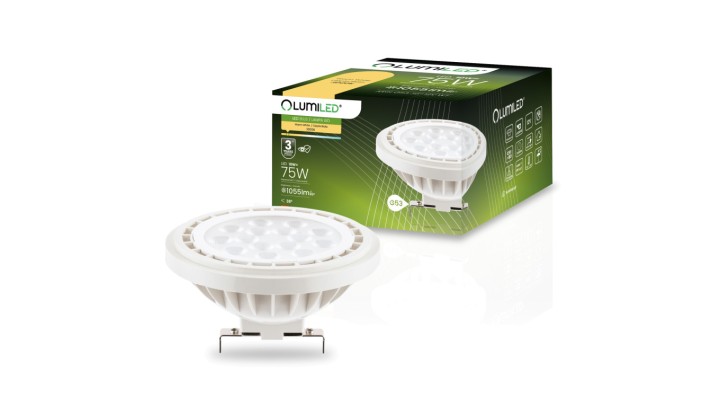 Żarówka LED G53 AR111 10W = 75W 1055lm 3000K Ciepła 38 12V AC/DC LUMILED