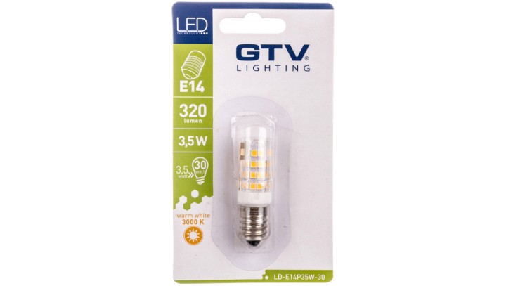 Żarówka LED SMD 2835 ciepła biała E14 3.5W AC220-240V kąt świecenia 360 stponi 320lm 38mA 3000K LD-E14P35W-30
