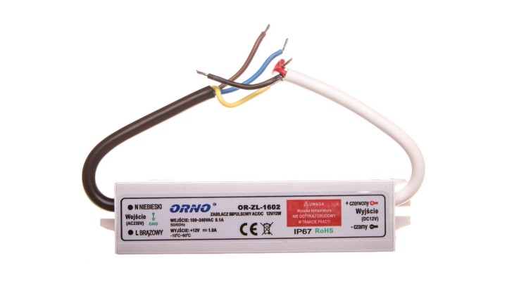 Zasilacz do oświetlenia LED 90-265V AC/12V DC 12W IP67 OR-ZL-1602