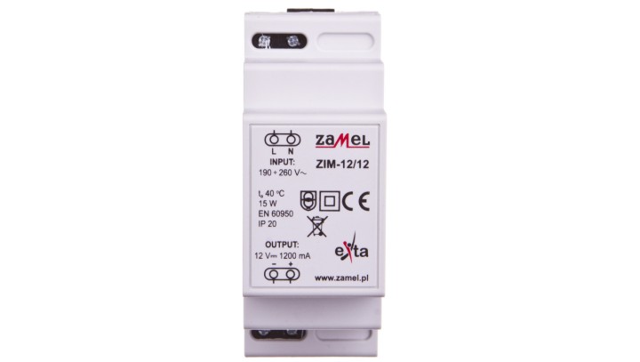 Zasilacz impulsowy 190-260VAC/12VDC 15W 1,2A ZIM-12/12 EXT10000159