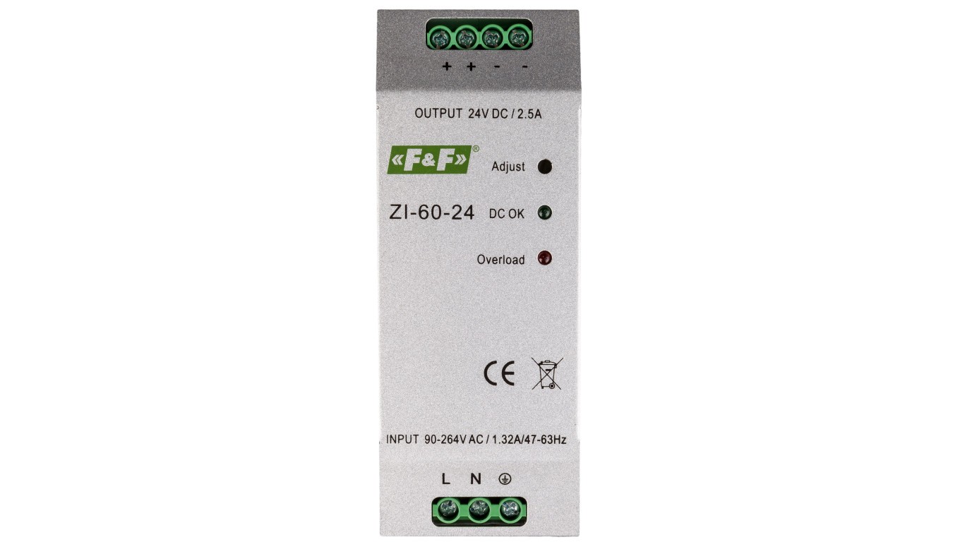 Zasilacz impulsowy 230VAC/24VDC 60W 2,5A ZI-60-24V