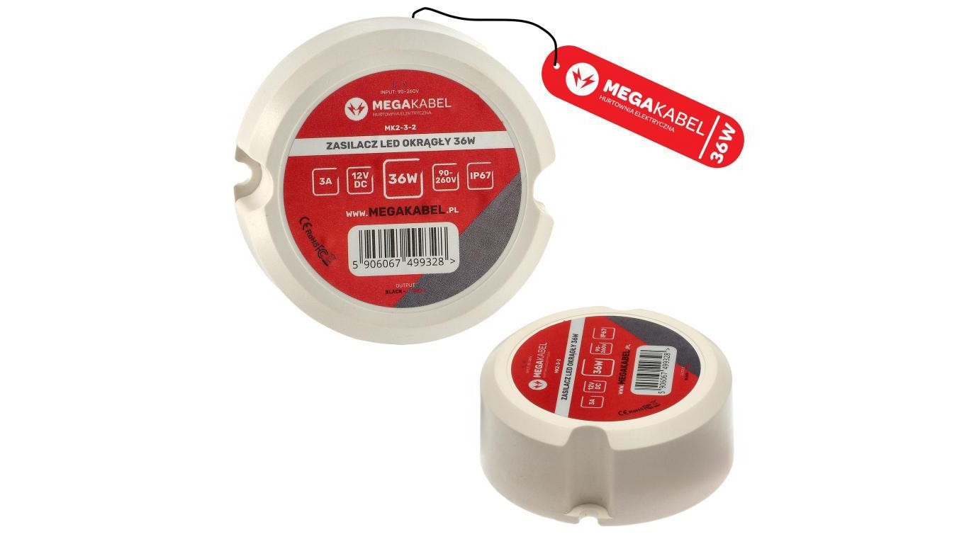 Zasilacz LED do taśmy LED do puszki 60mm 36W 230V ZY-36-CE MK MEGAKABEL