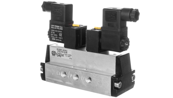 Zawór rozdzielający 230V AC 1MPa DTE 5/2 G1/8 22.0201.5218J