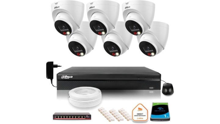 ZESTAW 6 Kamer IP Dahua 8mpx IPC-HDW1839T-A-IL-0280B-S6 + DYSK 1TB