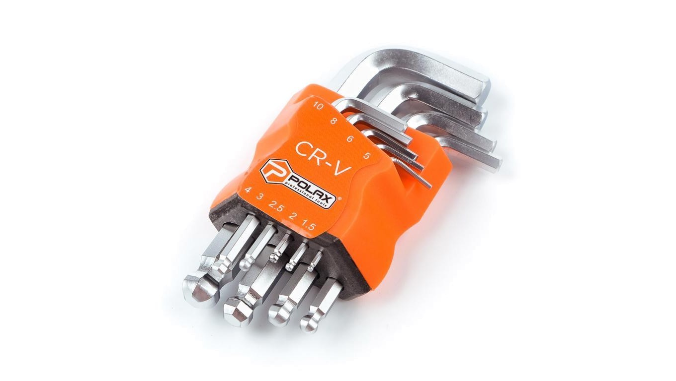 Zestaw kluczy imbusowych Polax L z kulką, 9 sztuk, 1,5-10 mm, Cr-V (25-009)