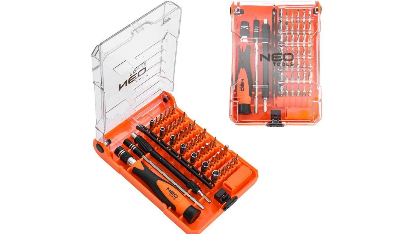 Zestaw końcówek wkrętakowych, serwisowy do smartfonów 53 sztuki + przedłużki + narzędzie do otwierania kart SIM NEO 06-111-1