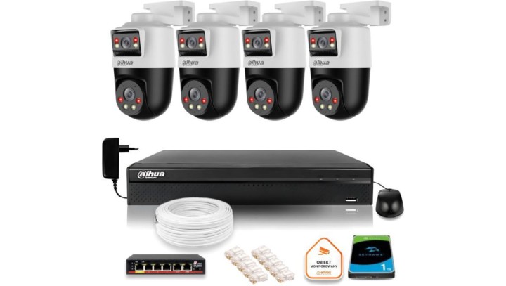 Zestaw monitoringu IP Dahua 4 kamery obrotowe 2MP+2MP z dyskiem 1TB