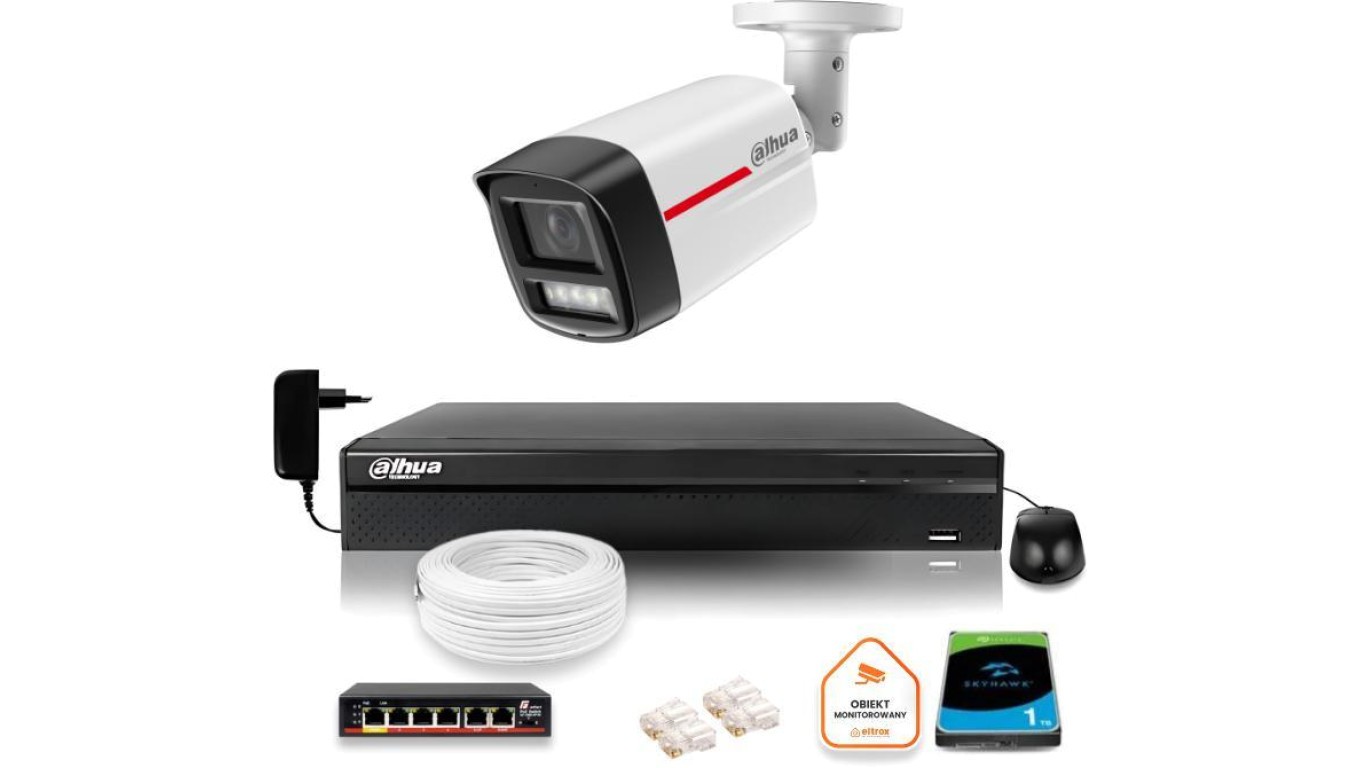 Zestaw monitoringu IP DAHUA kamera zewnętrzna WizColor 2K 4MPx 50m