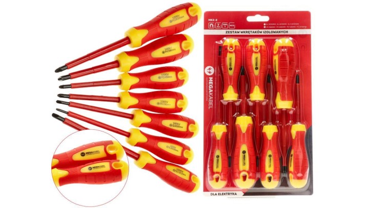Zestaw śrubokrętów wkrętaków izolowanych DLA ELEKTRYKA 7 sztuk TPR-1 MEGAKABEL