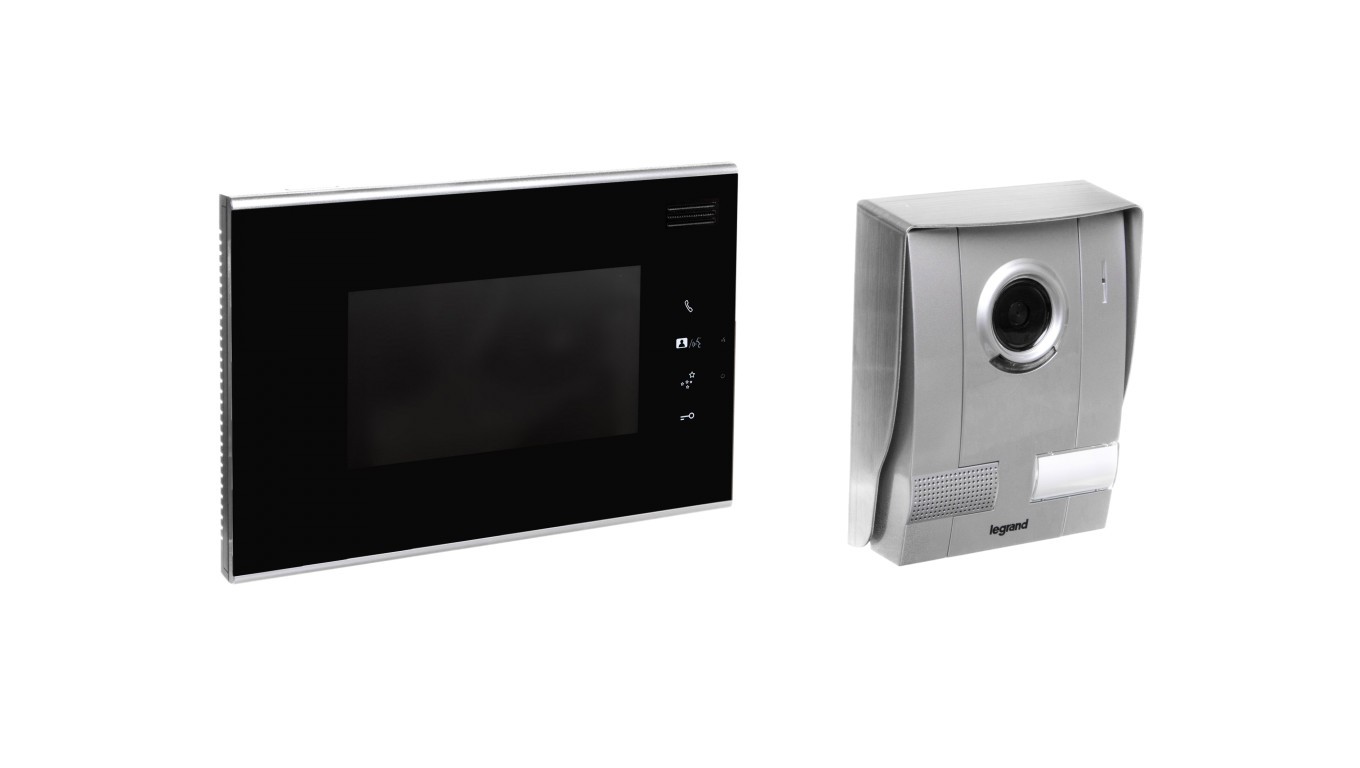 Zestaw wideodomofon z ekranem KIT 7 cala czarny z daszkiem 369210