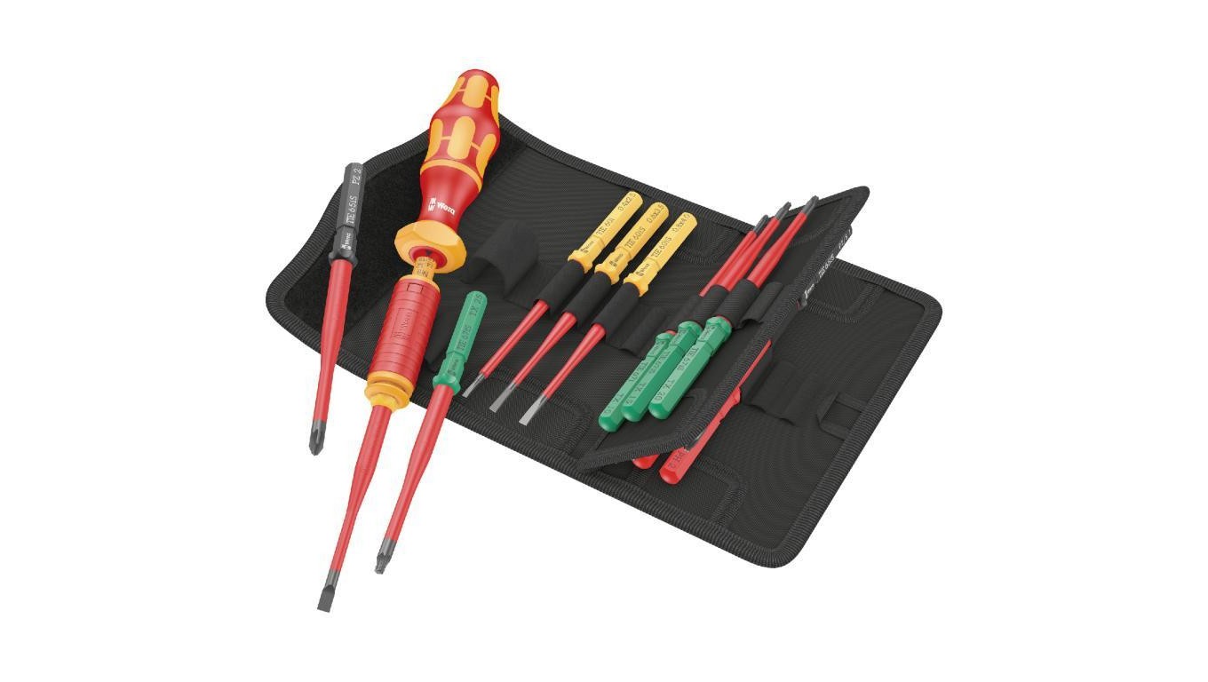 Zestaw wkrętaków izolowanych dla elektryka 15 sztuk: rękojeść dynamometryczna 1,2-3 Nm + 4x płaskie PŁ + 2x krzyżowe PH + 2x PZ