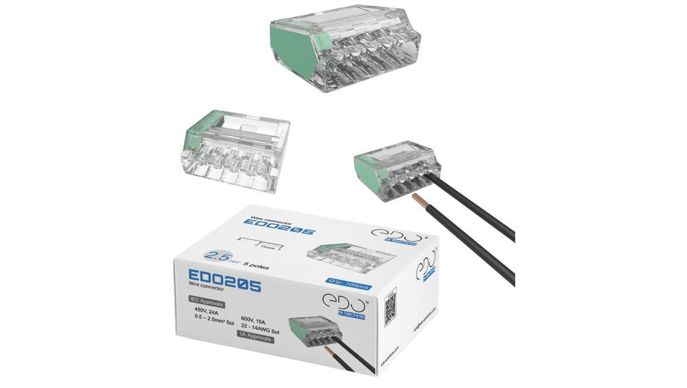 Złączka instalacyjna do przewodów sztywnych maks. 2.5mm² 5-przew. EDO205 100 szt.