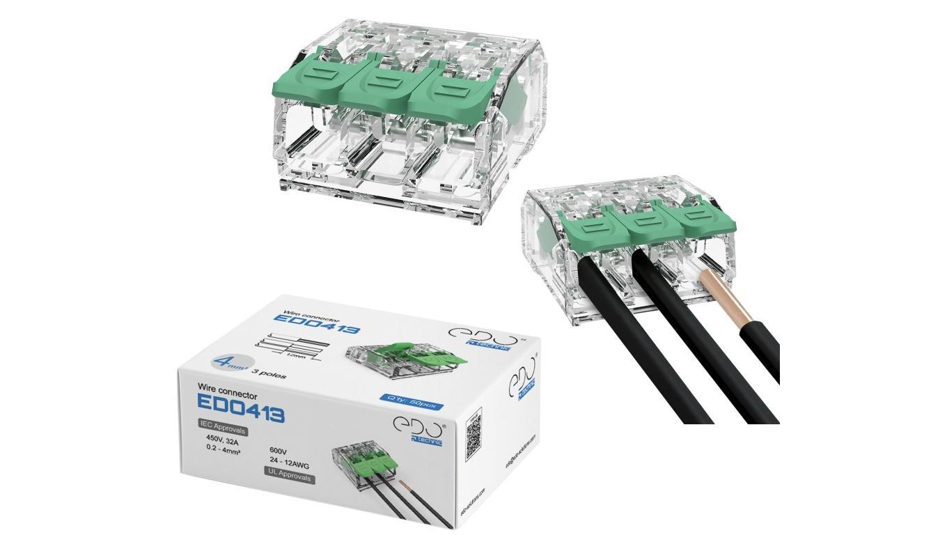 Złączka instalacyjna z dźwignią do wszystkich rodzajów przewodów maks. 4mm² 3-przew. EDO413 50 szt.