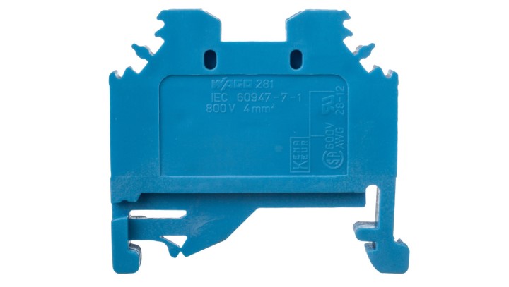 Złączka szynowa 2-przewodowa 4mm2 niebieska 281-104