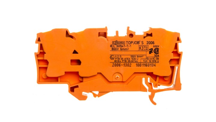 Złączka szynowa 3-przewodowa 6mm2 pomarańczowa TOPJOBS 2006-1302 /25szt./