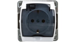 GAZELA Gniazdo bryzgoszczelne z/u Schuko IP44 klapka przezroczysta białe GPH-1JS/m/00/d