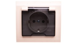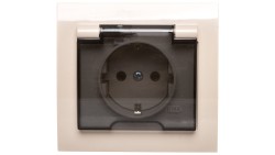 KIER Gniazdo bryzgoszczelne z/u Schuko IP44 z przesłonami klapka przezroczysta beżowe GPH-1WSP/01/d