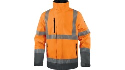 Kurtka ostrzegawcza, wodoodporna i oddychająca z poliestru RIPSTOP Stretch, Pomarańczowy Fluo-Szary, rozmiar: XL, TRACKORXG