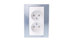 Unica Plus Gniazdo podwójne b/u z przesłoną błękit lodowy MGU63.063.854